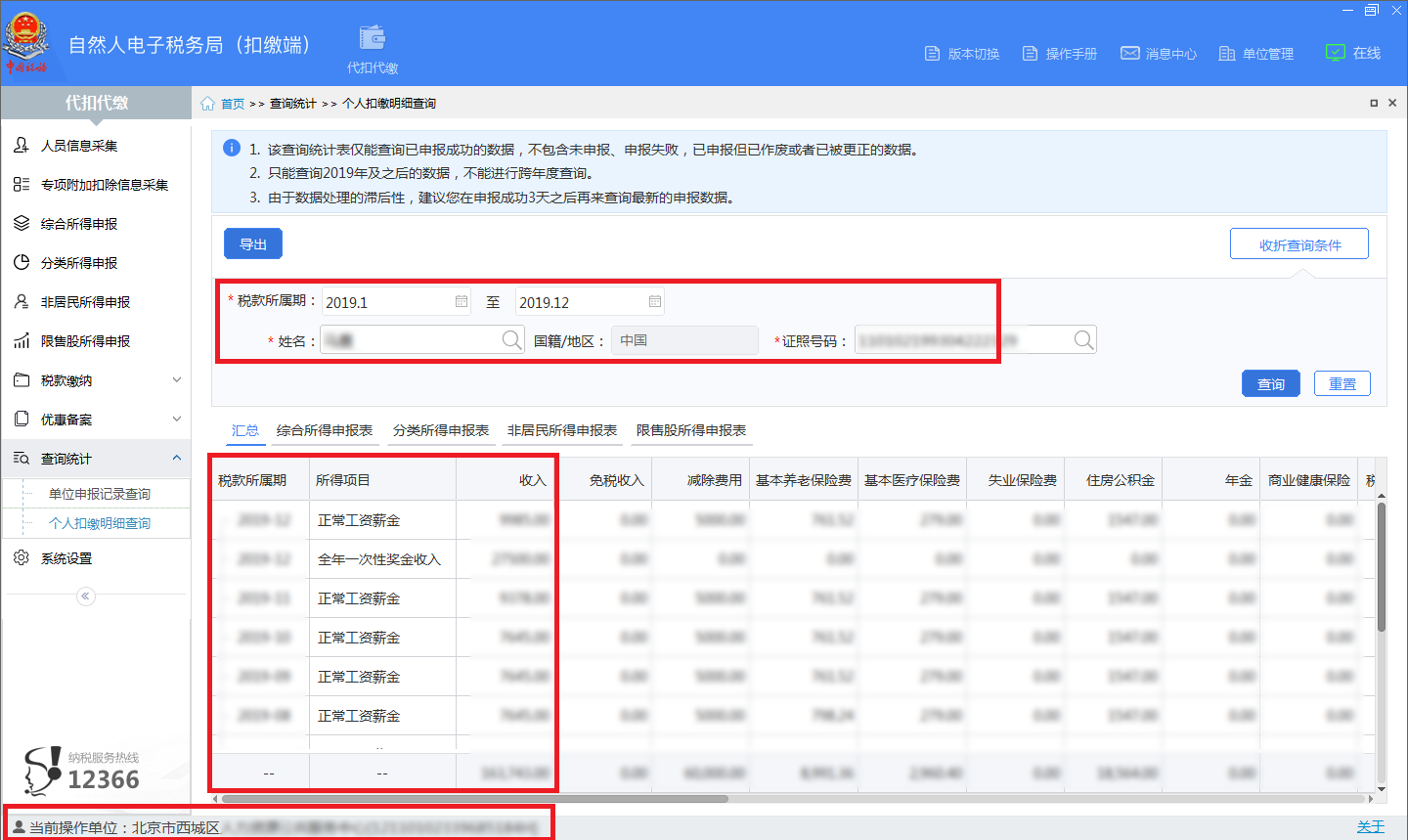 打印路徑:申報單位登錄“自然人稅收管理系統扣繳客戶端”全屏打印“個人扣繳查詢明細”